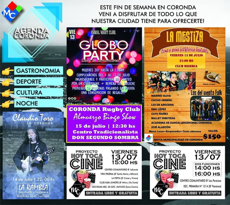 Por otra parte habrá una peña folclórica en Club Miseria con un buena cantidad de artistas desde las 21 y además Animal Night Club presenta: Globo Party.