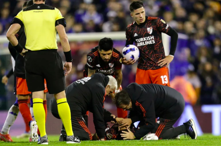 El susto se apoderó de todos y el árbitro brasileño pidió asistencia automáticamente. Si bien Aliendro nunca perdió el conocimiento, cayó desplomado, con el cuerpo casi sin control y quedó nocaut. El cuerpo médico de River Plate lo atendió rápidamente, también lo siguieron bien de cerca los médicos de Vélez Sarsfield.