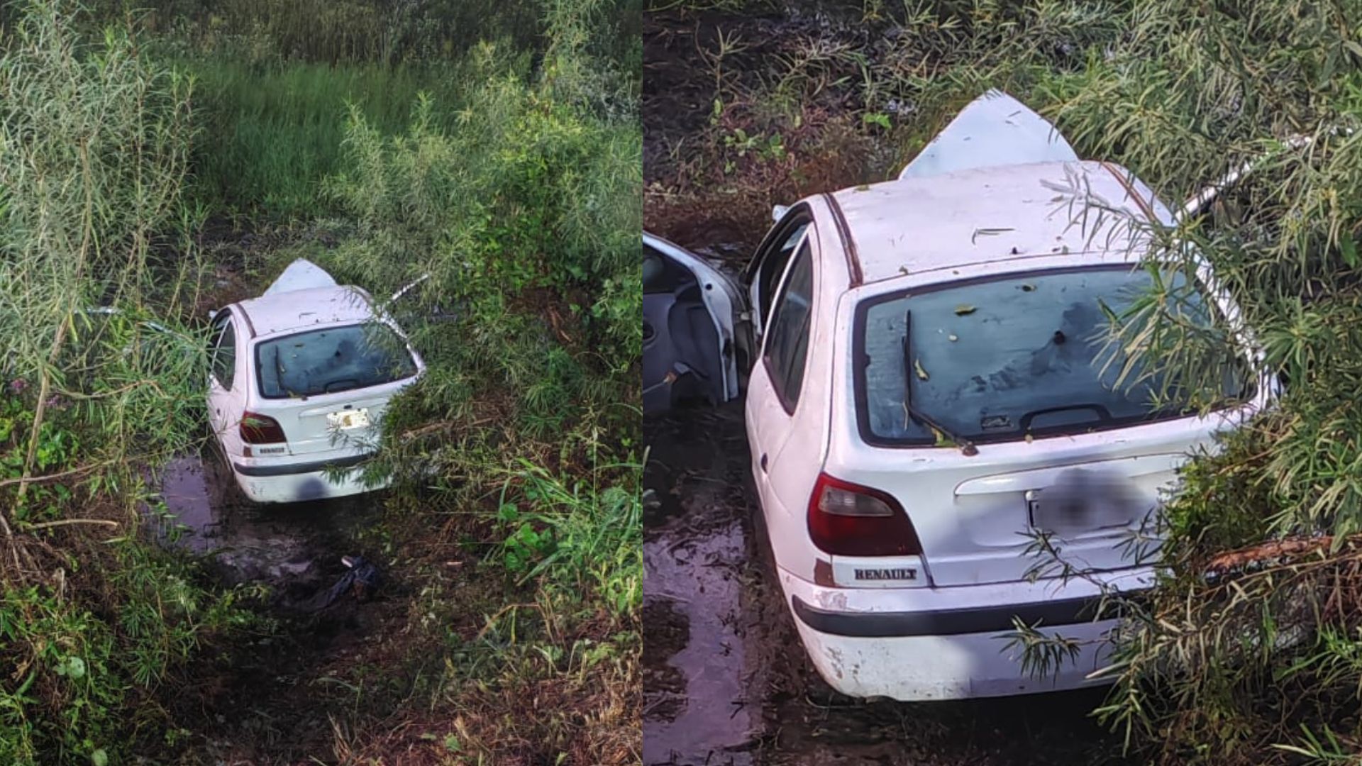 Tras la colisión, el auto se salió de la cinta asfáltica y terminó en una depresión al costado de la ruta.