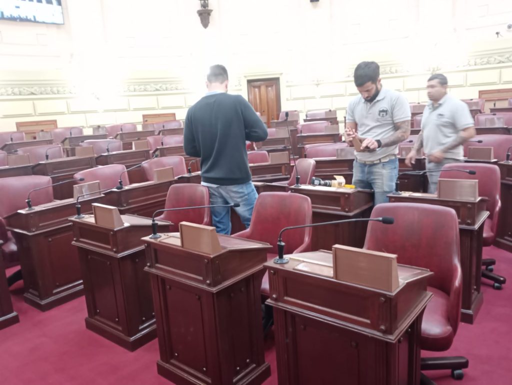 García detalló: “Diputados y Diputadas somos 50, pero los convencionales constituyentes son 69. De manera que hacían falta 19, en realidad 18 bancas, porque hay una de más aquí en el recinto, para que todos estuvieran cómodos realizando tamaña tarea. Normalmente, cuando hay sesión conjunta o asamblea junto con el Senado, lo que hacemos es cubrir esos lugares con sillas, pero ahora nos pareció pertinente que la ocasión lo merecía y que también nos queda para el futuro cubrirlo con bancas muy similares y con pupitres para que tengan la comodidad, en fin, de escribir, de estar cómodos, van a ser muchas horas de debate, de votación. Y a la vez, también retapizamos y arreglamos todo lo que era madera trabajado de las bancas actuales. Así que todos van a estar cómodos.”