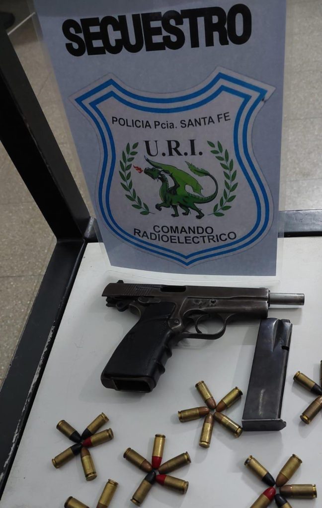 La deflagración de los sucesivos disparos de arma de fuego retumbaron antes de la medianoche sobre calle Tarragona al 600 en el barrio Centenario de la capital santafesina, y varios de los vecinos denunciaron el suceso y minutos después arribaron policías del Comando Radioeléctrico capitalino, que aprehendieron a tres hombres identificados como A. e. C. de 45 años, B. P. de 23 y J. N. S. de 32, a los que les secuestraron una bolsa con una pistola calibre 9 milímetros con una bala en la recámara y otras en el almacén del cargador y otros sueltas, tratándose de un arma de guerra en buenas condiciones de conservación y de funcionamiento. Los tres aprehendidos fueron trasladados y alojados en la sede de la Estación Policial Sur EPS.