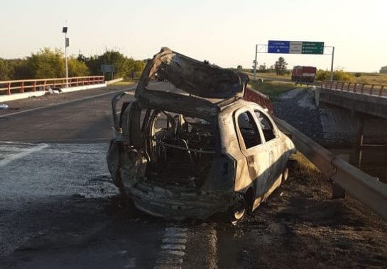 Producto del impacto, este último vehículo impactó de lleno contra el guardarail del puente del Arroyo Colastiné y se prendió fuego.