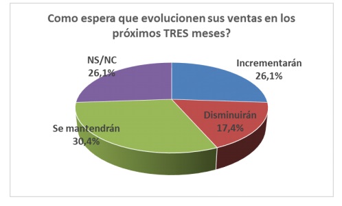 Al consultar a los comerciantes sobre sus expectativas para los próximos tres meses, vemos que sólo el 26,1% cree que se incrementarán (marcando un notable descenso en dichas apreciaciones con respecto a meses anteriores); un 17,4% cree que disminuirán aún más, un 30,4% se mantendrán y un 26,1% no sabe precisar tendencia.