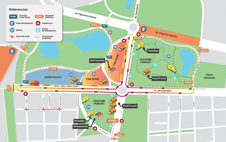 La organización prevé una convocatoria masiva que podría rondar las 500.000 personas, considerando que habrá sectores gratuitos en espacios como plazas cercanas, donde se instalarán pantallas gigantes para seguir la actividad. También se dispondrá de zonas especiales con servicios exclusivos que replicarán la experiencia de los paddocks de la Fórmula 1.