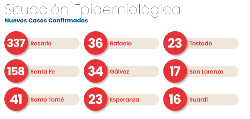 Del total de casos positivos, Santo Tomé registro 41 pacientes contagiados, Rafaela 36, Esperanza 23 y Reconquista