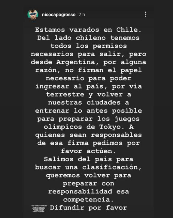 Según informó Nicolas Capogrosso a Veo Noticias en la tarde noche de este miércoles “si sale todo bien voy a estar cruzando la frontera de Chile”. Recién el viernes, podrá estar tranquilo en la localidad de Rosario.