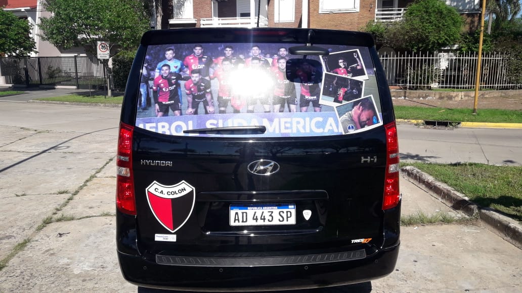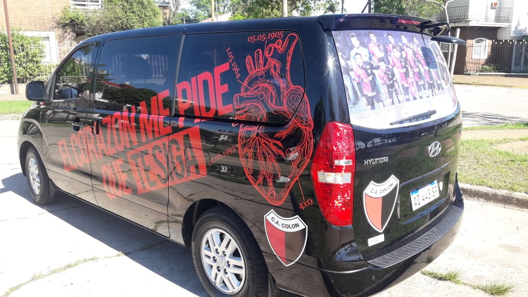 Catalina contó a Veo Noticias que “la idea fue cuando le conté a mi papá que nos íbamos todos y me dijo ploteala, ponele cosas, el escudo. La idea estuvo buena, me encantó y lo que hicimos fue ponernos de acuerdo con toda la familia, con la frase, cómo la íbamos a diseñar. También nos hicimos todos la remera con la frase, la fecha; nos fuimos motivando entre todos y salió así”.