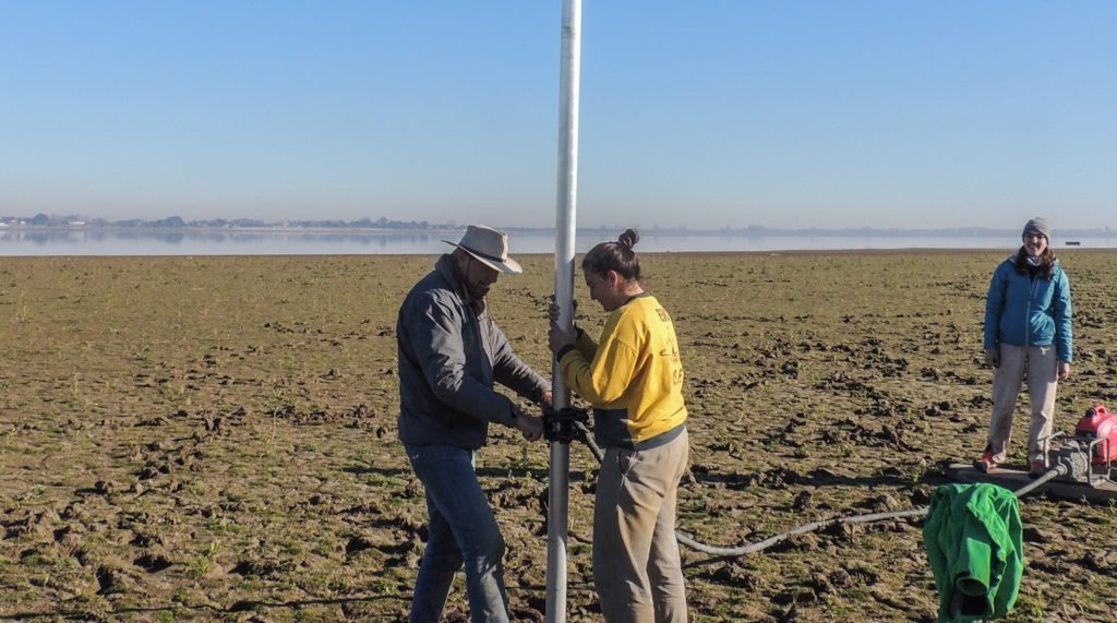 Un equipo interdisciplinario de investigadores de la Facultad de Ingeniería y Ciencias Hídricas (FICH) de la Universidad Nacional del Litoral (UNL), encabezado por Carlos Ramonell, realizó en la primera semana de julio dos perforaciones en áreas de la superficie emergida del lecho de la laguna Setúbal. Una de ellas está ubicada frente a barrio El Pozo y la otra cercana a la defensa de Colastiné Norte, conocida como Paraíso 17.