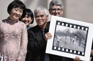 Francisco saludó a una mujer vietnamita protagonista de una emblemática foto de la guerra en 1972