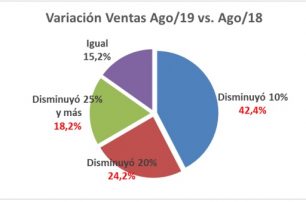 Según los datos del último Relevamiento de ventas del Centro Comercial de Santa Fe correspondiente al mes de agosto, éste fue un mes “partido al medio”, de acuerdo a los porcentajes que se pueden apreciar a continuación. Comparación interanual Como observamos, sólo un 15,2% declaró haber sostenido niveles iguales a Agosto 2019, mientras que el […]