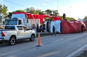 Un camión volcó en Circunvalación Oeste y el tránsito permanece restringido