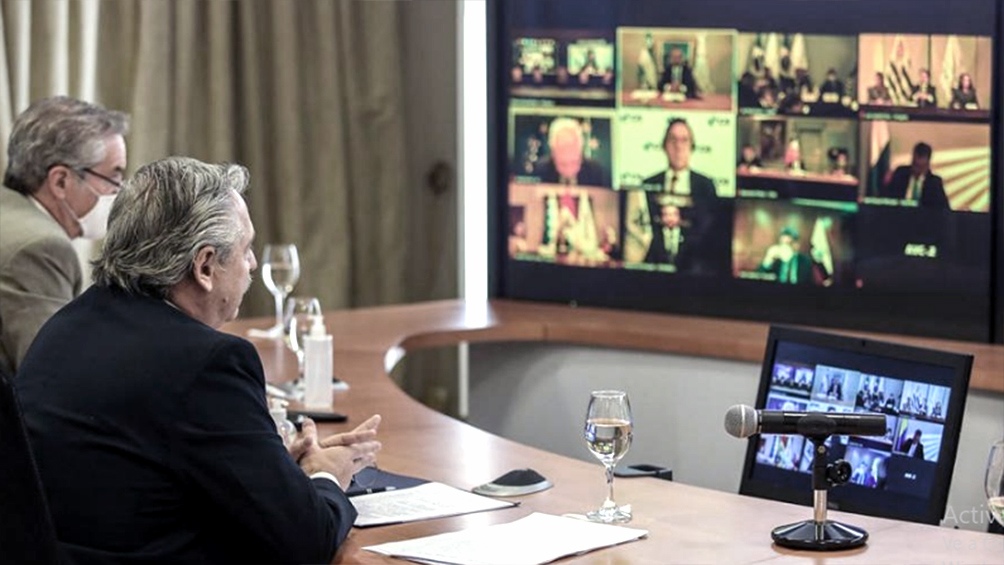 Así lo afirmó al exponer este jueves desde la residencia de Olivos en la 56ta. Cumbre de Jefes de Estado del Mercosur, que se realizó desde Paraguay en forma virtual -por primera vez en la historia- debido a la pandemia y durante la cual ese país la traspasó la presidencia pro-témpore del bloque a Uruguay.