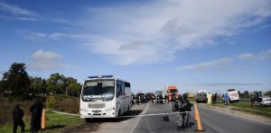 En el mediodia de jhoy en la Autopista a Santa Fe en el km 3 emboscaron un mini bus que trasladaba detenidos desde Piñeyro a Coronda donde se fugaron 9 y robaron armas y chalecos a los efectivos policiales.-