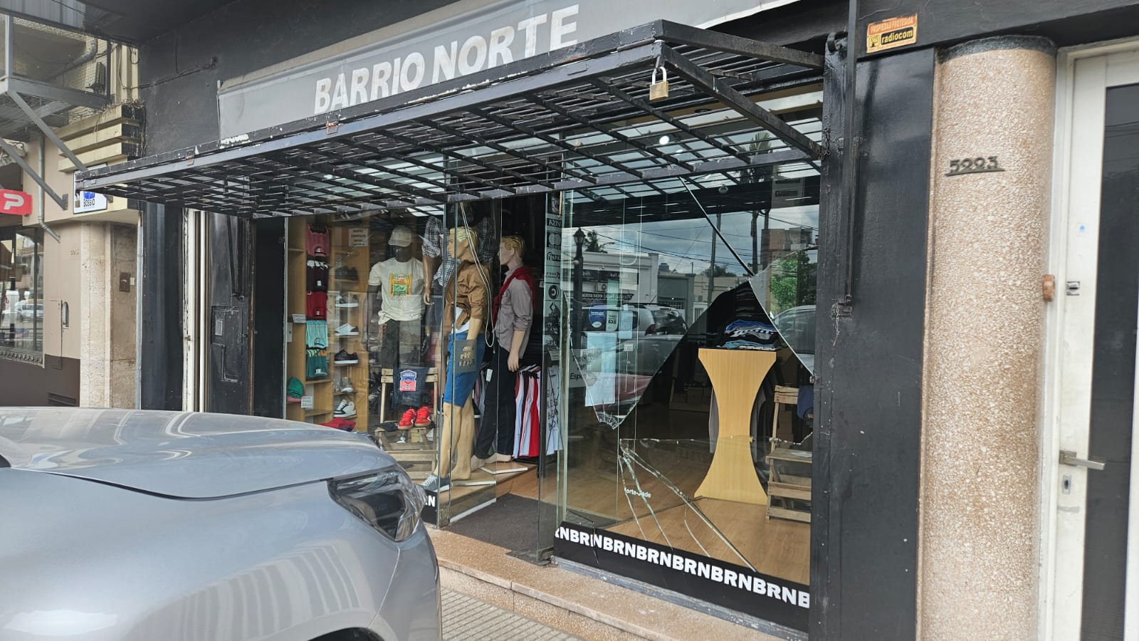 Los delincuentes no solo causaron el daño, sino que aprovecharon para robar. “Se llevaron parte de lo que estaba en la vidriera; había muchas prendas, de calidad y marca”, detalló el comerciante.