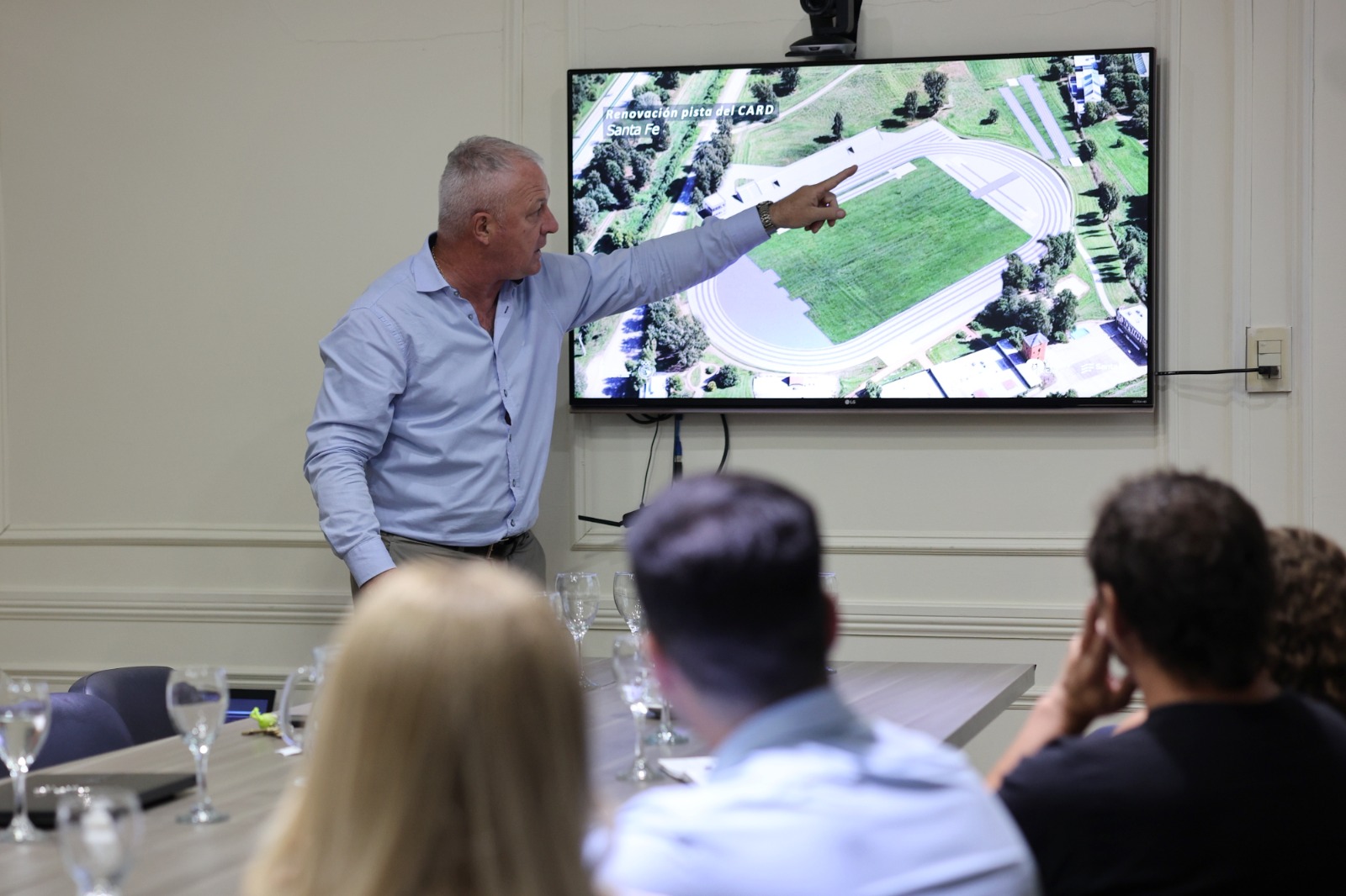 Uno de los puntos altos de la reunión fue la presentación del avance de obras. Se destacan el Estadio Multipropósito CARD y la renovación de su pista de atletismo en el sur de la ciudad, junto con la intervención integral del Bv. Tacca. Además, en barrio Esmeralda Este II se ejecutan 346 viviendas que funcionarán como Villa Deportiva para alojar a las delegaciones.