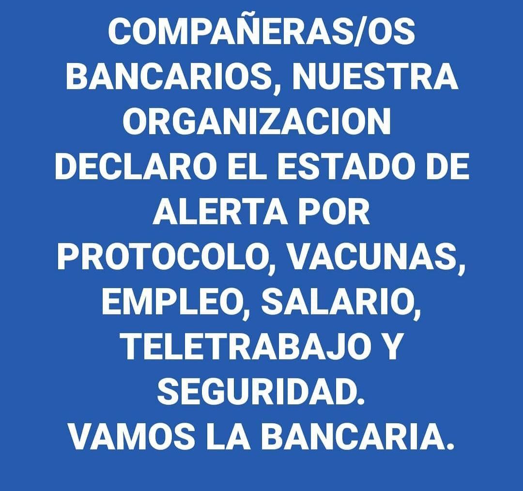 El gremio de los trabajadores bancarios, a través de un comunicado, se declaró en estado de alerta por una serie de reclamos. Según indicaron a través de una misiva, el estado de alerta es: