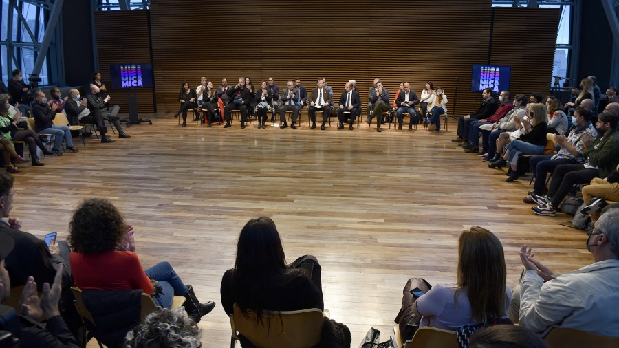 La edición presencial 2022 del Mercado de Industrias Culturales Argentinas (MICA), una política pública que busca “potenciar la producción, otorgar visibilidad y promover la comercialización de bienes y servicios de las industrias culturales”, fue presentada este viernes en la cúpula del Centro Cultural Kirchner con la presencia de los ministros de Cultura, Tristán Bauer; y de Desarrollo Productivo, Matías Kulfas; el presidente del Banco de la Nación Argentina (BNA), Eduardo Hecker, y la secretaria de Desarrollo Cultural, Lucrecia Cardoso, junto a representantes de organizaciones y asociaciones del sector.