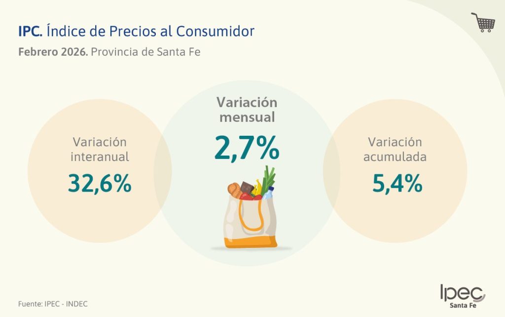 En Santa Fe, el promedio del segundo mes del año fue 0,2% menor que el porcentaje nacional; según datos del Instituto Provincial de Estadísticas y Censo (IPEC) la inflación de diciembre en la Provincia trepó al 2,7%. Mientras que la variación interanual es de 32,6 y el acumulado de 2026 es de 5,4.