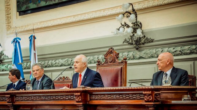 Seguidamente, hizo mención al “plan de obras para el Poder Judicial más importante de los últimos 60 años en la Provincia de Santa Fe. Ya está en funcionamiento el Centro de Justicia Penal de la ciudad de Rosario, se está construyendo la tercera etapa de los Tribunales de la ciudad de San Cristóbal, los edificios nuevos para los Tribunales de la ciudad de Reconquista, de Casilda y de Cañada de Gómez, a su vez, se están encarando obras importantes en el viejo Hospital de Venado Tuerto para erigir allí el Centro de Justicia Penal del Departamento General López. Se implementaron cambios muy importantes con la modernización y la digitalización de los Registros de la Propiedad, del Registro Civil y la Mesa de Entrada Digital que permite el acceso informático de distintos trámites”.