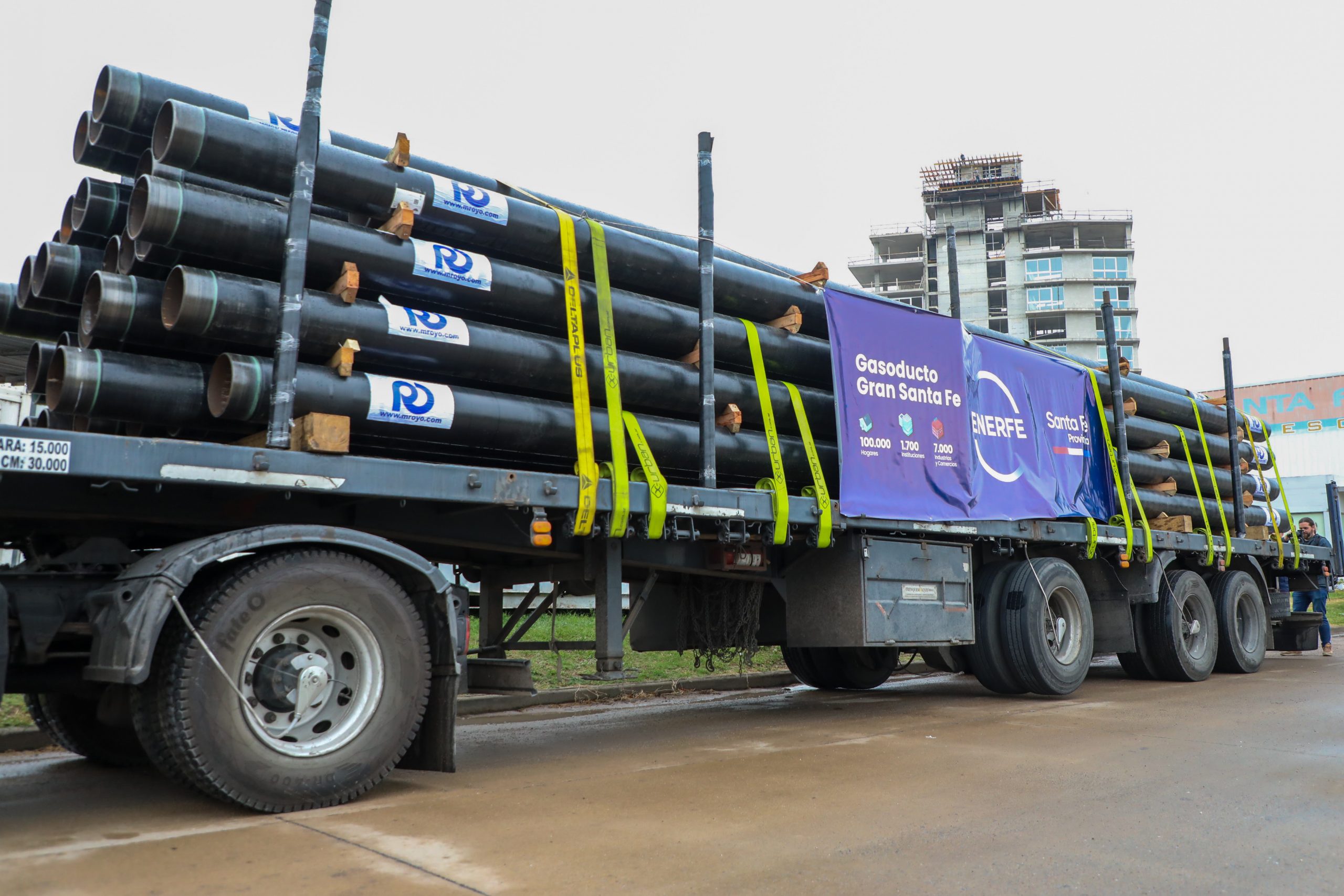 Este jueves llegaron los materiales para la realización de la obra del Gasoducto Gran Santa Fe. Se trata de los primeros caños que se colocarán bajo la Laguna Setúbal. Los trabajos demandarán una inversión total de 3.578.529.889 de pesos, financiados por la Secretaría de Energía de la Nación.