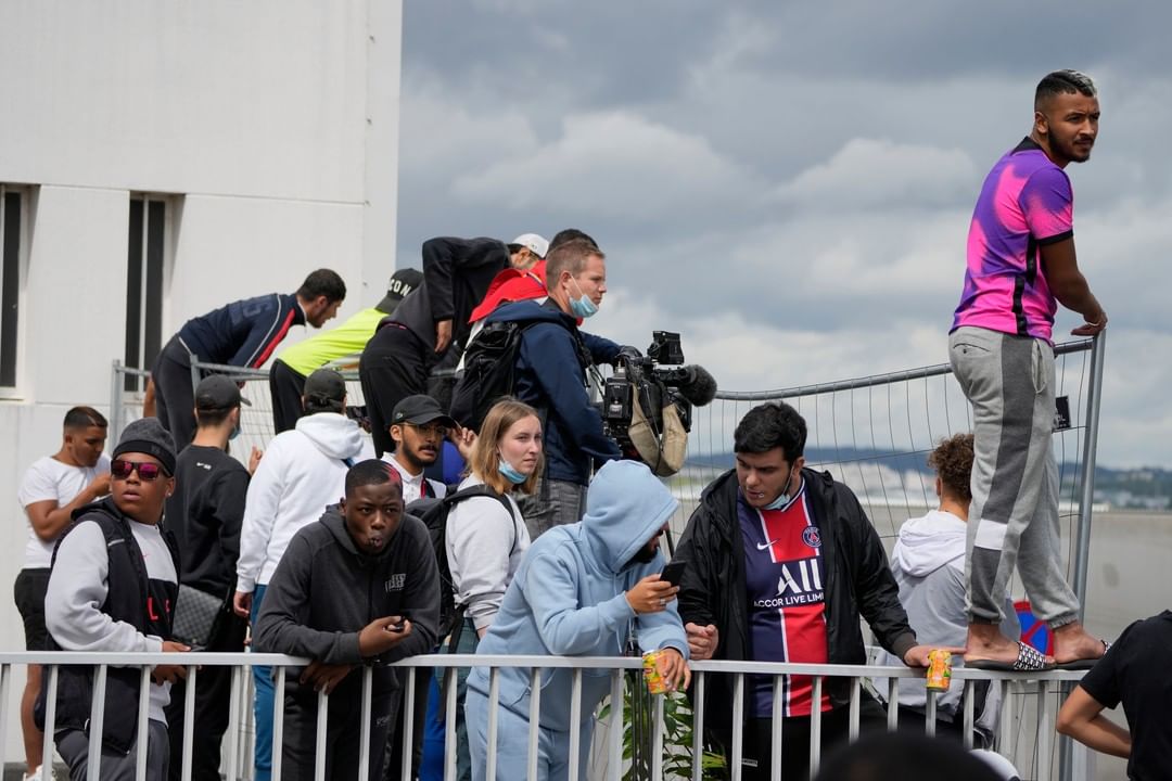 Cientos y cientos de hinchas del París Saint-Germain esperan por la inminente llegada de Lionel Messi en la entrada del estadio y también en las inmediaciones del aeropuerto de Bourget.