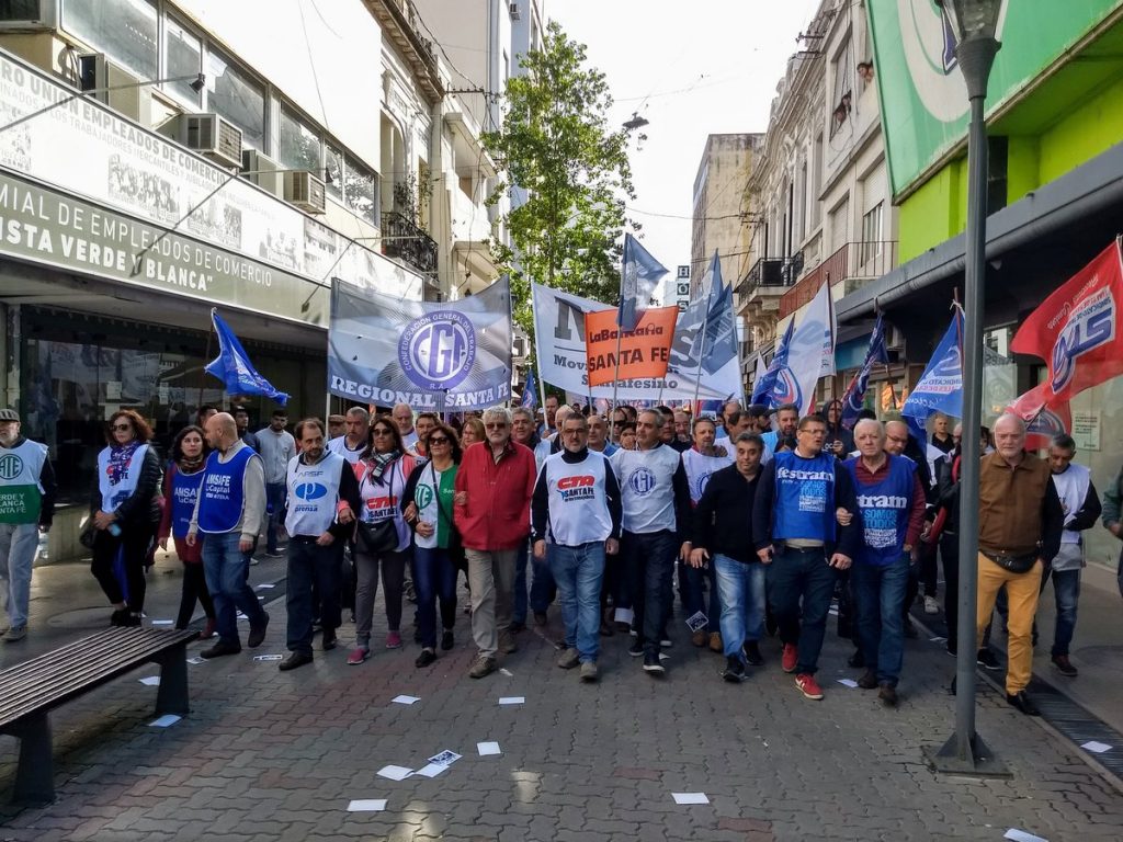 Santa Fe tuvo esta mañana su replique del paro general convocado por Hugo Moyano y la Central de los Trabajadores de la Argentina. Los gremios que adhieren se movilizaron y realizaron un acto en la esquina de San Martín y Tucumán.