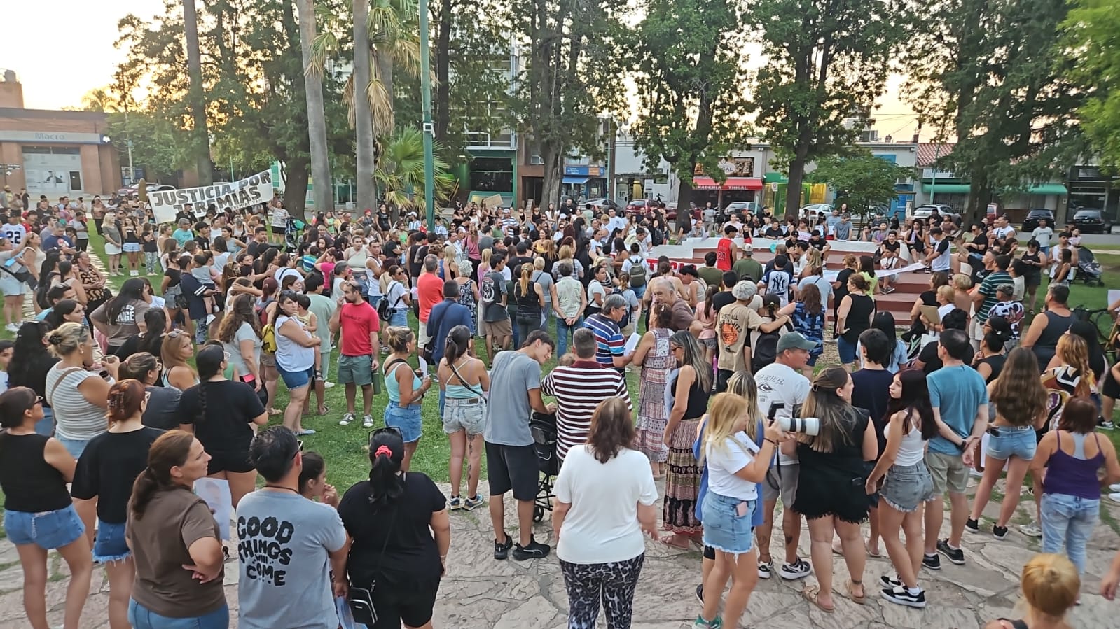 La marcha, que se repite cada viernes, partió desde la plaza hacia la Avenida 7 de Marzo y culminó en las letras corpóreas ubicadas en el ingreso al Puente Carretero . Rodeada de una multitud, la familiar destacó el acompañamiento de la gente a pesar de la angustia que generó la viralización del video en los últimos días.