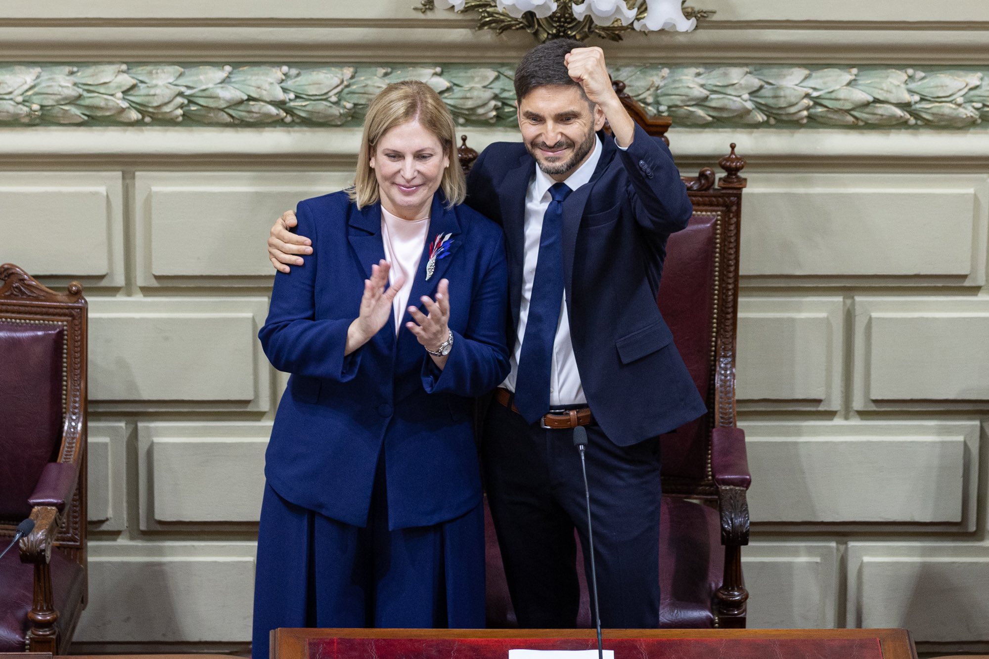 “Durante el primer año de gestión nadie se tomará vacaciones y junto a mi equipo vamos a trabajar 24 x 7. Vamos a poner a nuestra provincia en el lugar más alto de la República Argentina, porque podemos, porque queremos, sabemos y tenemos con qué. ¡Qué Dios bendiga al pueblo de la provincia de Santa Fe”.