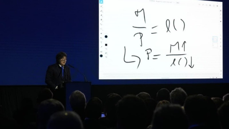 “Si escuchan a un economista decir que la tasa de interés es el precio del dinero, invítenlo a irse, por decirlo de una manera elegante”, dijo el libertario. “Porque no es que la tasa de interés existe porque existe el dinero, sino que existe porque existe el tiempo. Puede tener una economía de trueque con tasa de interés”, añadió, en modo académico.
