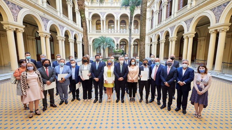 Justicia y transporte, tales fueron los dos ejes que abroquelaron a los gobernadores de 16 provincias que este martes anunciaron su acuerdo para trabajar en un proyecto propio de reforma de la Corte Suprema, a la vez que reclamaron al Congreso “un nuevo modelo de distribución de compensaciones tarifarias” ante la brecha entre el Área Metropolitana de Buenos Aires (Amba) y el interior. En rigor, serían 18 las provincias que forman parte de esta movida: las dos grandes firmas que faltaron en el acuerdo fueron las del santafesino Omar Perotti y la del cordobés, José Schiaretti, quienes se encentraban en Kuwait por el crédito para el acueducto Santa Fe-Córdoba.