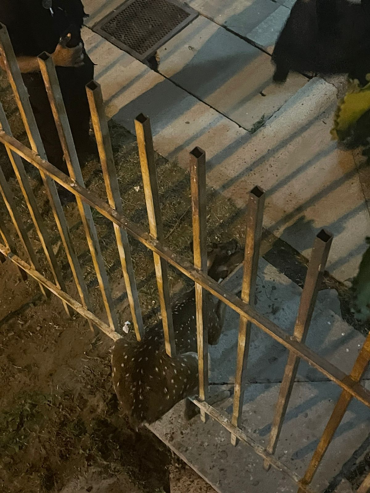 Este miércoles, poco antes de la medianoche, los vecinos de la manzana N° 10 del Fonavi San Jerónimo, en barrio Centenario, se vieron sorprendidos al escuchar ruidos provenientes de la planta baja. Al salir para verificar qué ocurría, descubrieron con asombro a un ciervo atrapado entre las rejas de una de las escaleras del edificio. Inmediatamente dieron aviso a la central de emergencias 911.