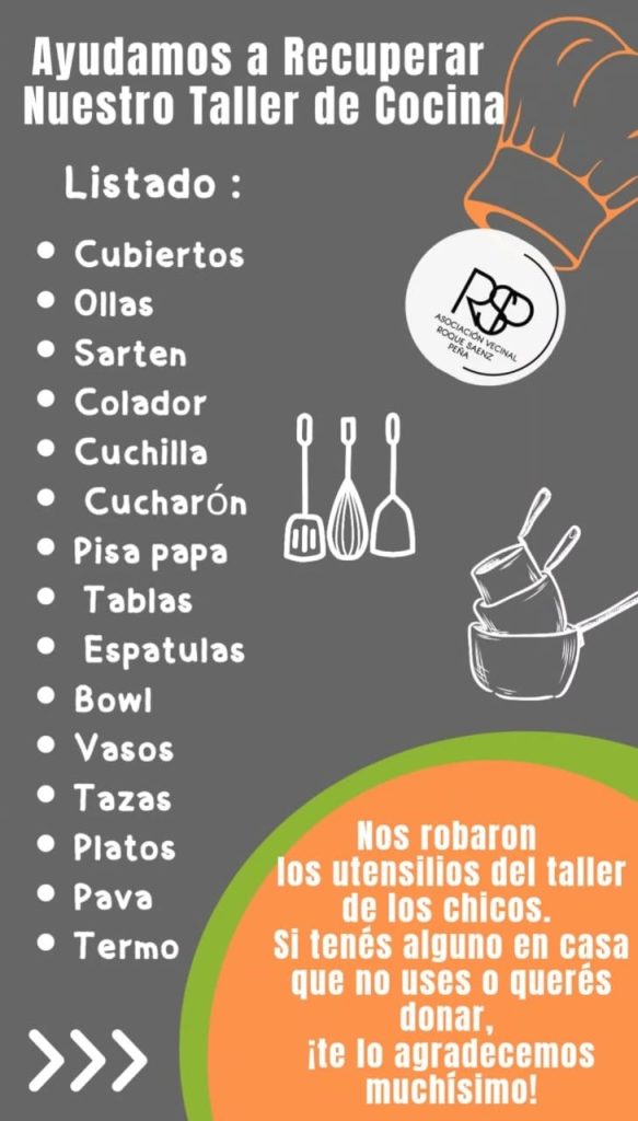La vecinal solicita especialmente donaciones de utensilios de cocina, materiales para los talleres y elementos deportivos. La campaña solidaria se está difundiendo a través de redes sociales, principalmente en Instagram. Pese al golpe sufrido, desde la institución remarcaron que continuarán trabajando para mantener este espacio clave para los jóvenes del barrio Alfonso.