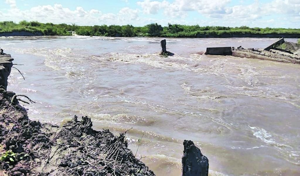 La erosión que produjo el agua proveniente de los campos de la zona oeste de la ruta provincial 1, al norte de Colonia Teresa -departamento San Javier-, complicó la instalación de un puente Bailey de más de 40 metros de largo.