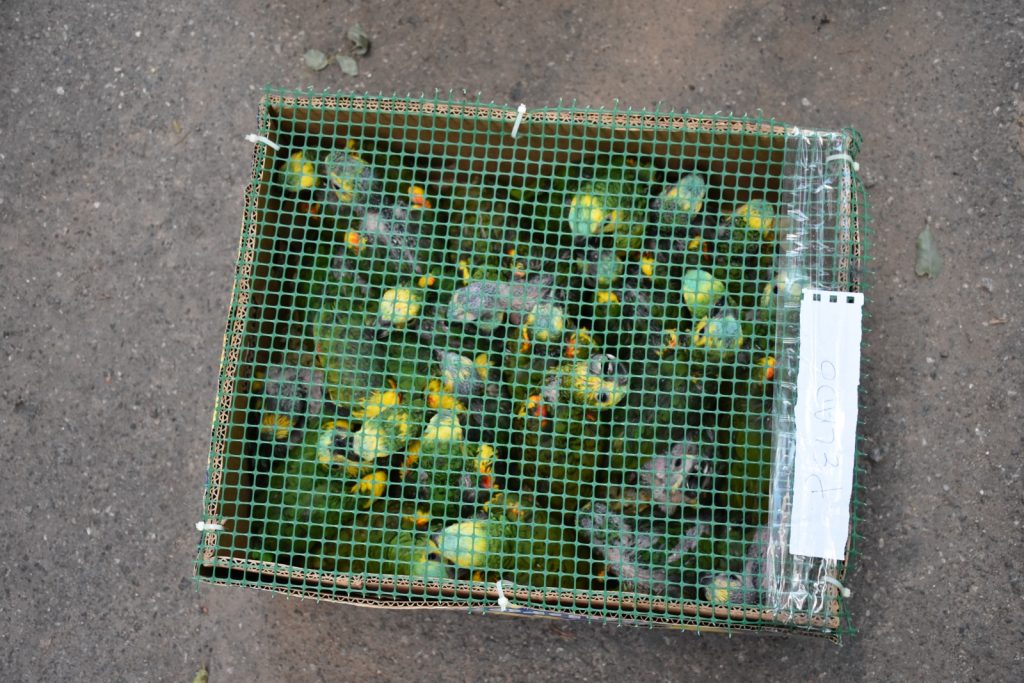Los animales estaban distribuidos en nueve cajas de cartón y varias jaulas improvisadas.