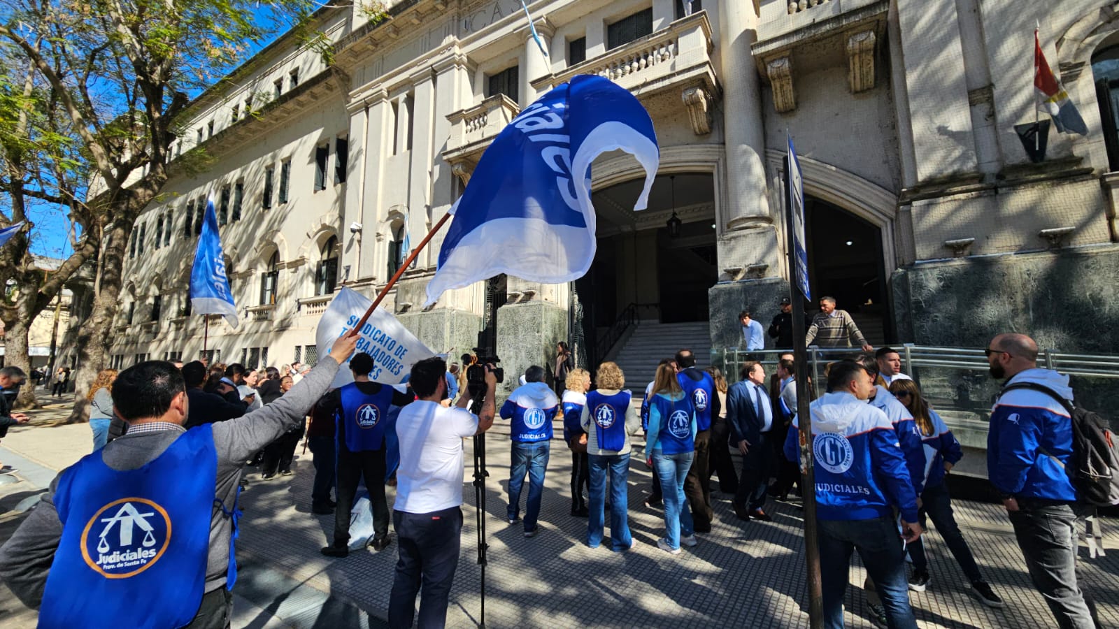 Esta mañana frente a los Tribunales de la provincia, empleados judiciales protagonizaron una nueva protesta. Exigen la firma de decretos que permitan cubrir ingresos y ascensos pendientes, un reclamo que afecta a unas 800 personas que tienen turno asignado desde 2021. Según el Secretario General del Sindicato de Trabajadores Judiciales, Juan Pablo Langella, la demora provoca perjuicios económicos y vulnera el derecho a la carrera judicial.