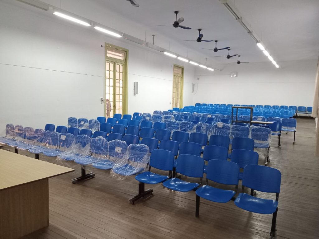 En la Escuela Secundaria N.º 331 se están ejecutando obras de reparaciones en tejas, cornisas y cielorrasos en el auditorio y se compraron tándem de asientos para ese espacio.