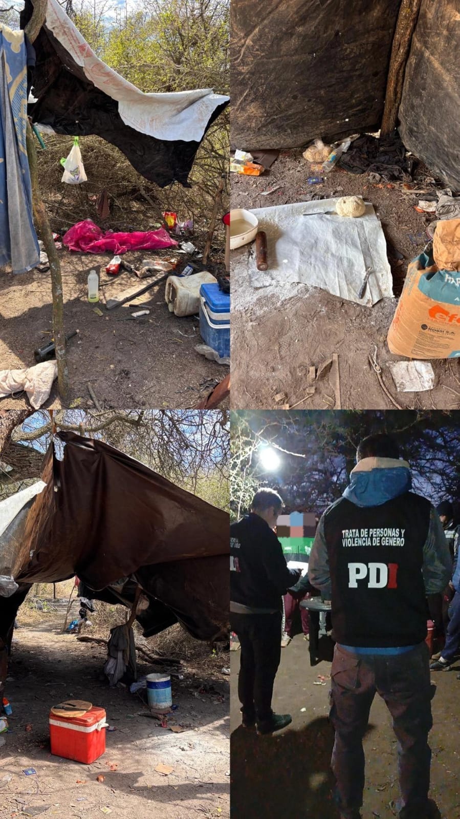 En el primer campo allanado, los agentes encontraron a 17 hombres, todos provenientes de Santiago del Estero, alojados en campamentos improvisados. Según informaron fuentes oficiales, dormían sobre colchones deteriorados a la intemperie, sin acceso a agua potable ni a instalaciones sanitarias básicas. En el lugar se secuestró un vehículo, dos celulares y un cuaderno con anotaciones relevantes para la causa.