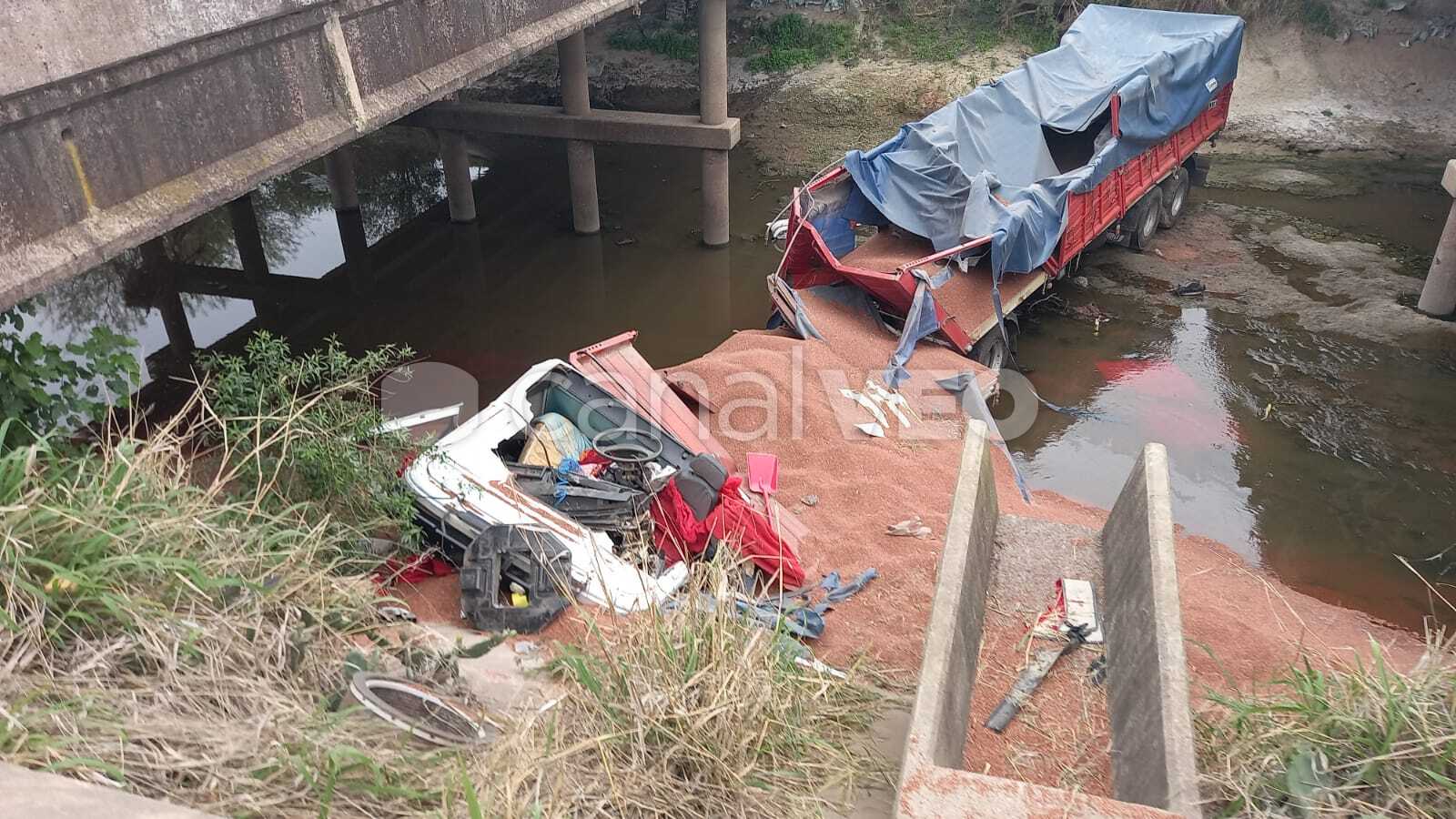 Por motivos que se desconocen, el camionero perdió el control del camión y chocó contra la baranda del puente sobre el arroyo y cayó al lecho del mismo.