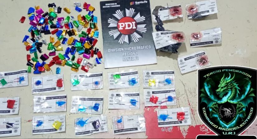 Dentro de la vivienda encontraron 154 envoltorios que contenían un polvo blanco y 5 paquetes con material vegetal. Las pericias posteriores confirmaron que se trataba de 32 gramos de cocaína y 17 gramos de marihuana, listos para su comercialización.