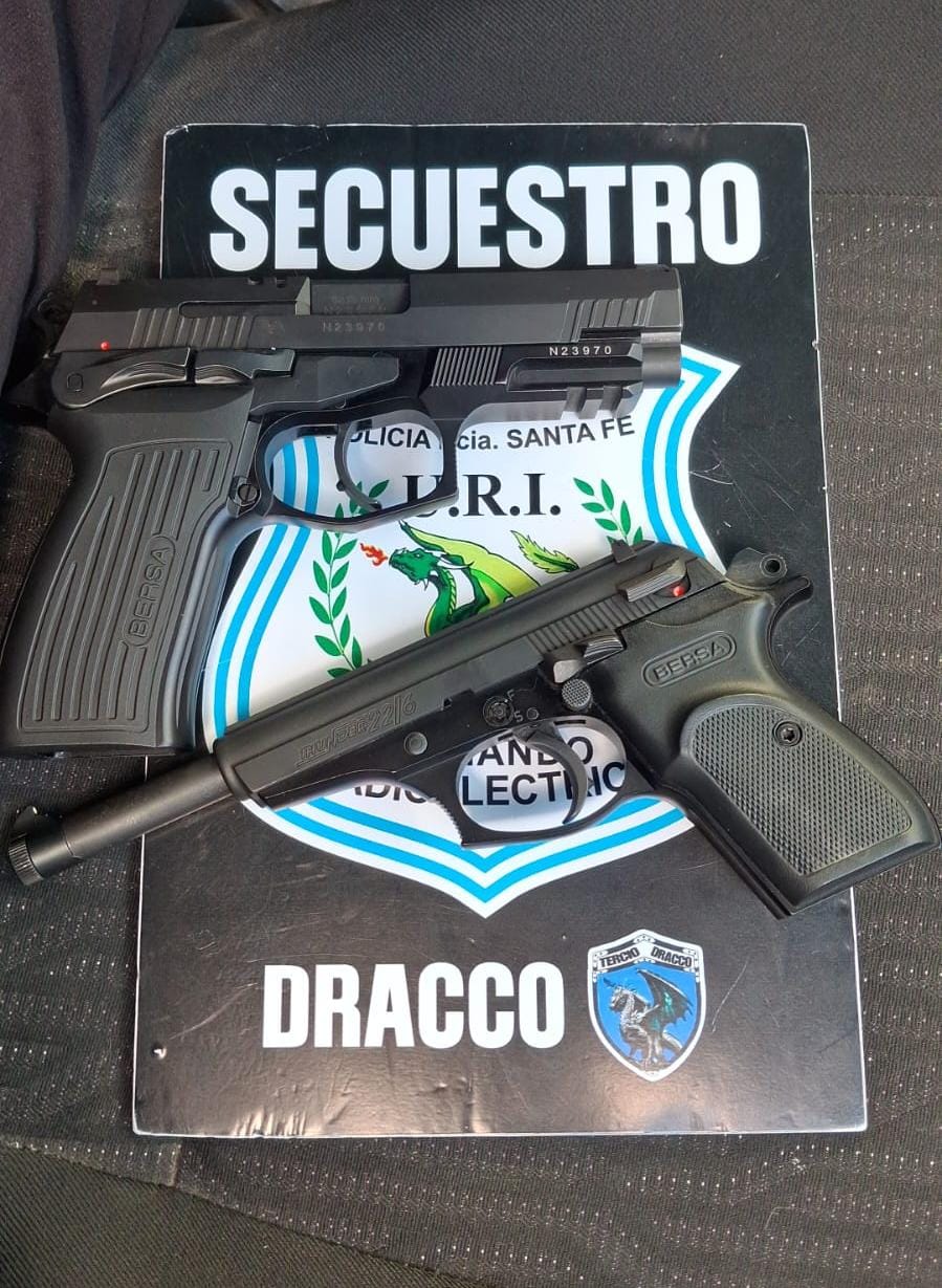 En ese momento, vecinos de la populosa barriada santafesina, advirtieron a los policías que en el interior del inmueble podría haber armas de fuego. Minutos más tarde, se hizo presente la propietaria de la vivienda, quien confirmó que poseía armamento y lo entregó voluntariamente, tratándose de una pistola calibre 9 milímetros que es un arma de guerra y de pistola calibre 22.