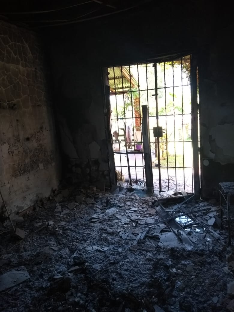 Al llegar a terreno, los propietarios vieron que salía humo del inmueble: delincuentes ingresaron a robar, se llevaron un microondas y dos garrafas. Pero eso no les alcanzó y desataron un incendio en la vivienda que provocó serios daños en techos y paredes.